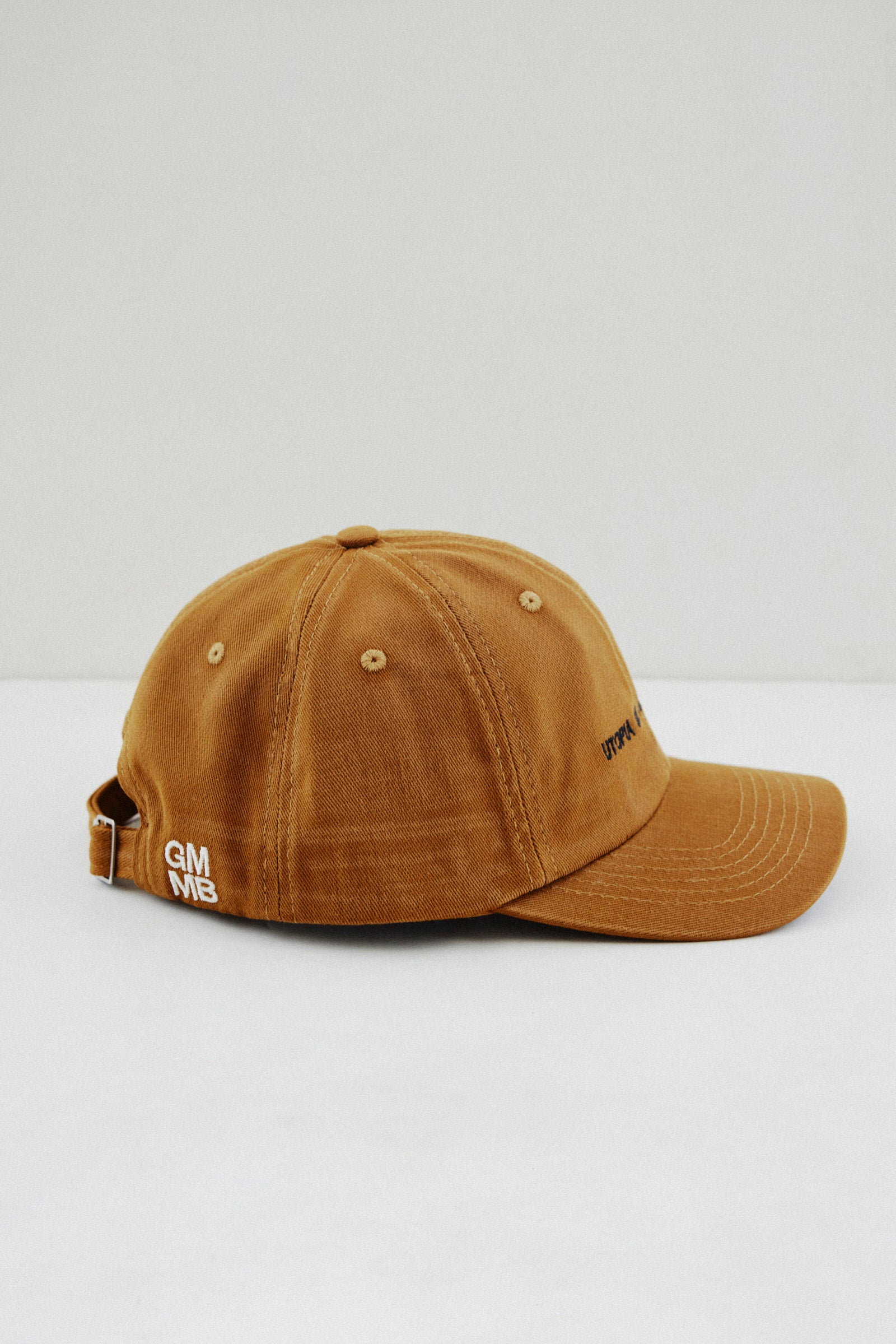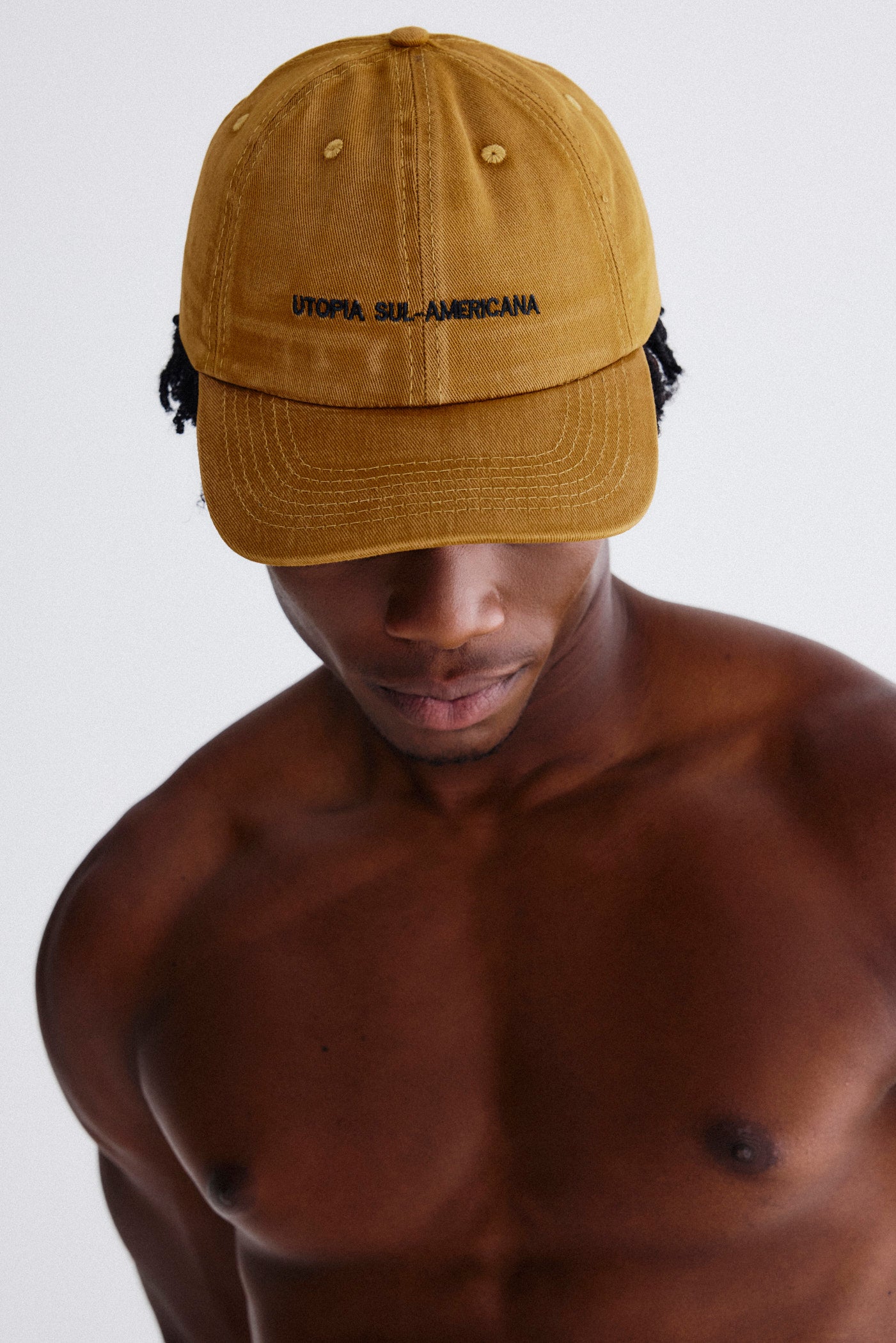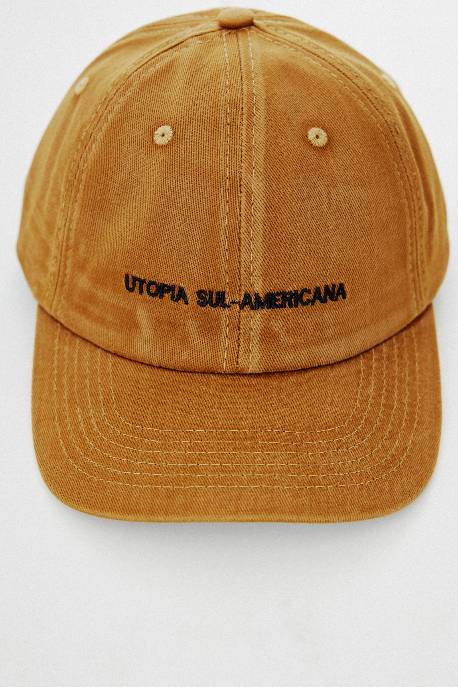 - O boné Gammba Utopia possui aba curva, modelagem clássica com recortes, texto na frente, logo na parte de trás, e fechamento por regulador.