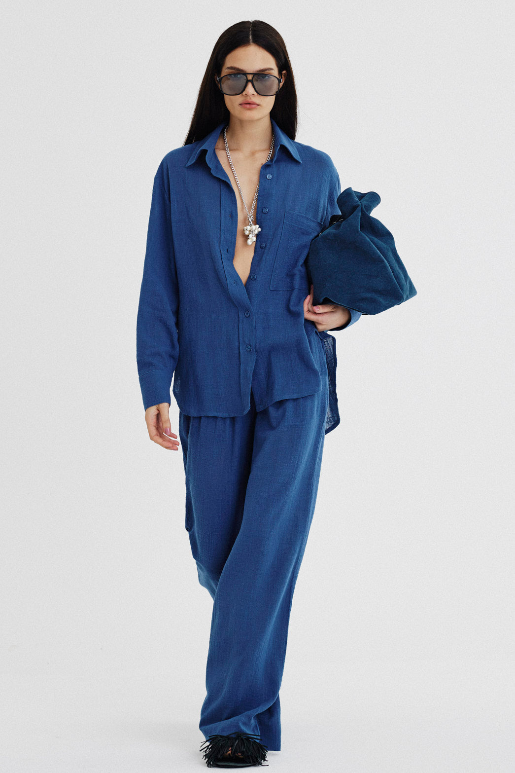 • Possui comprimento alongado, cós de elástico, bolsos embutidos nas laterais