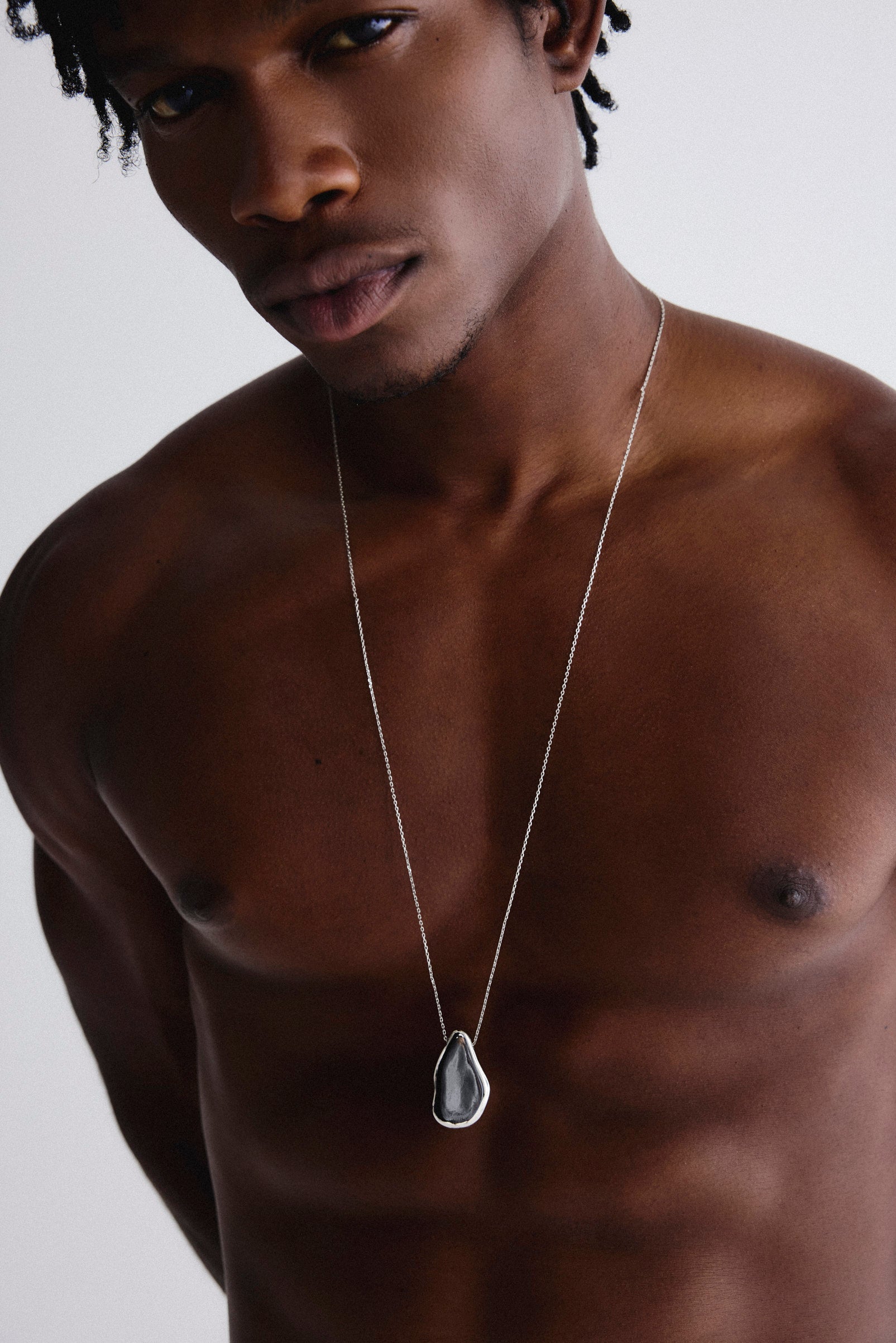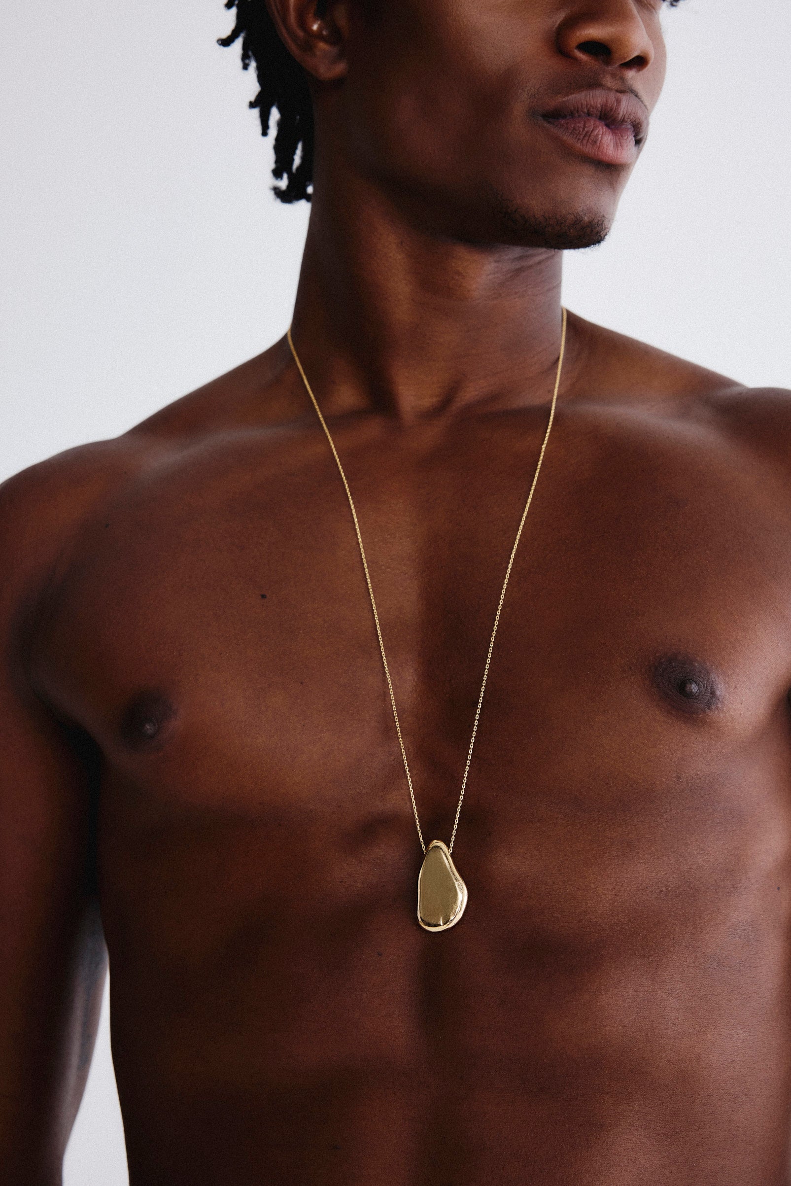 Este colar traz um pingente em formato orgânico que valoriza a fluidez natural das formas