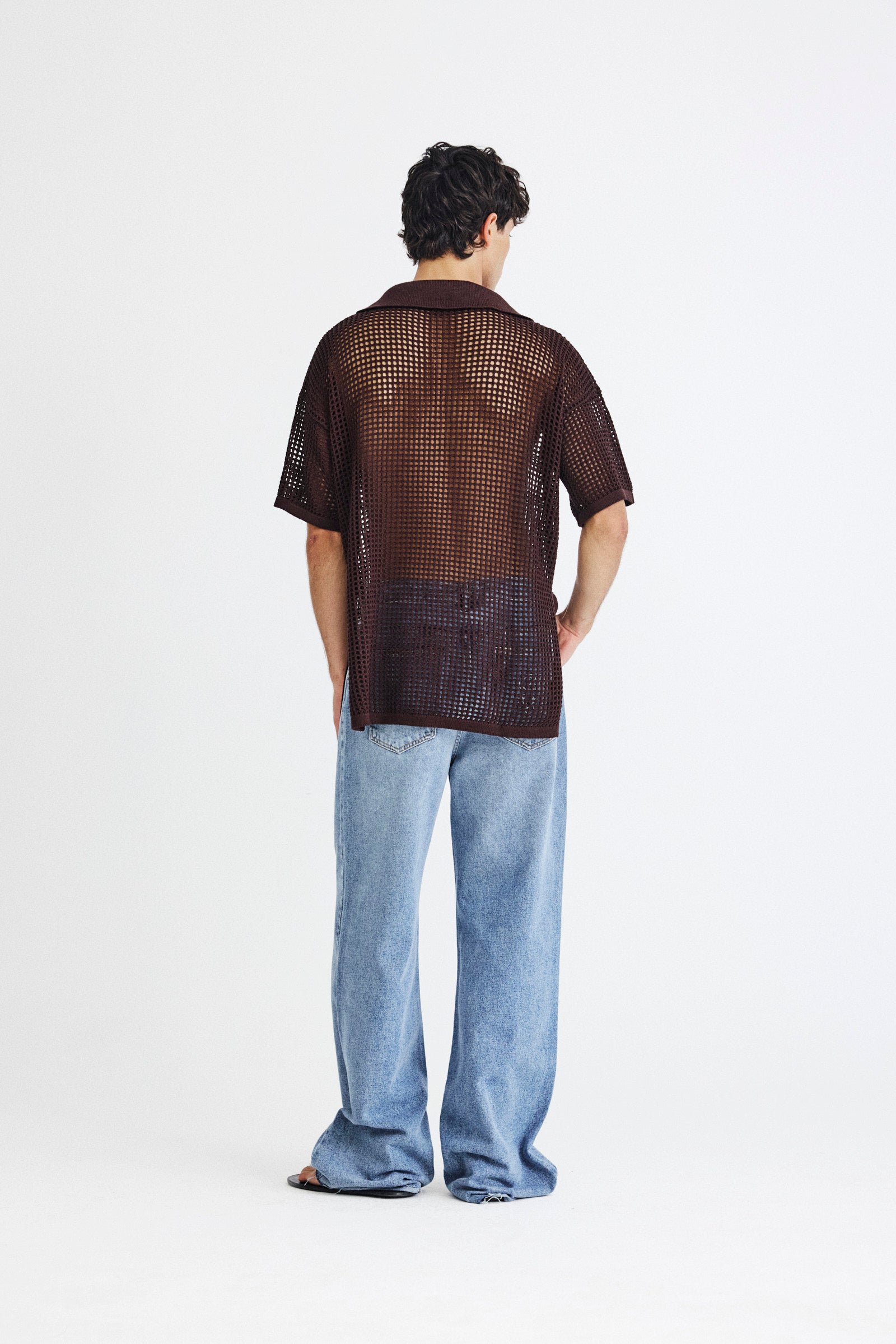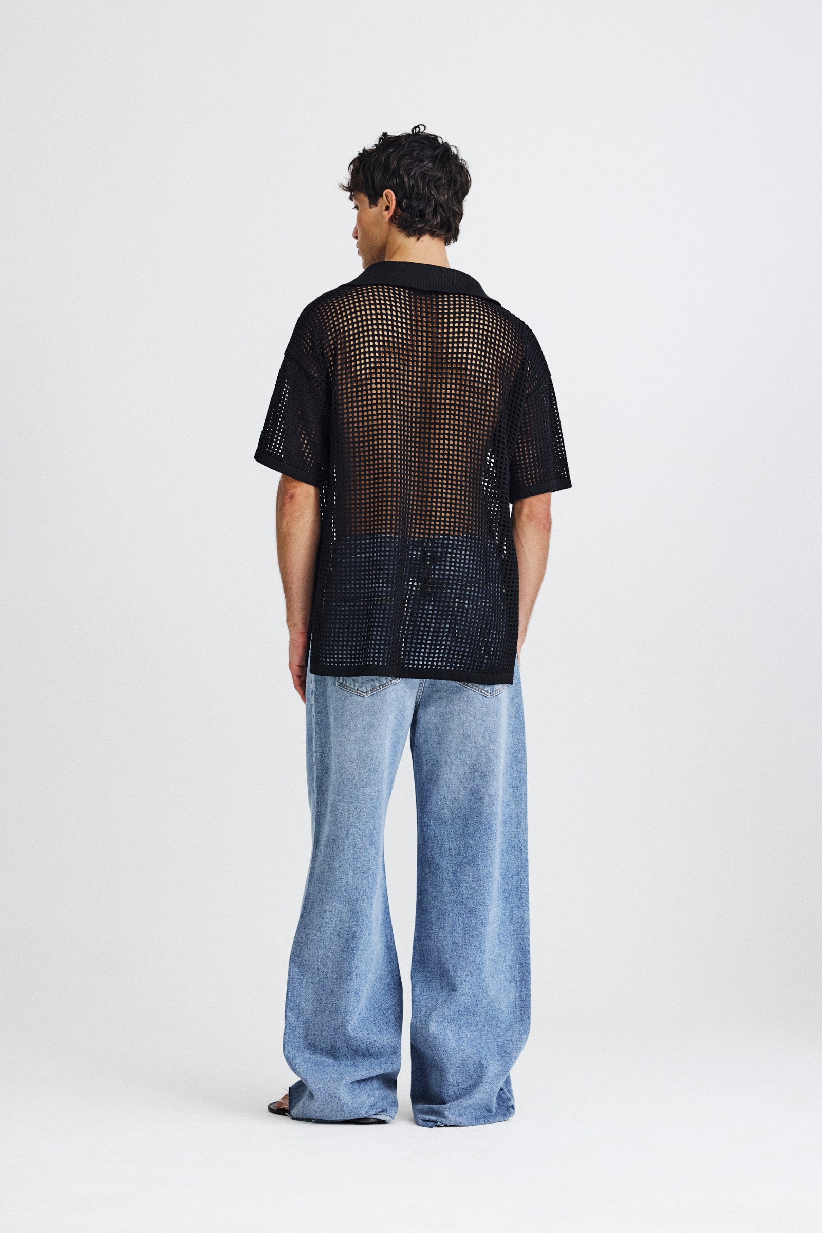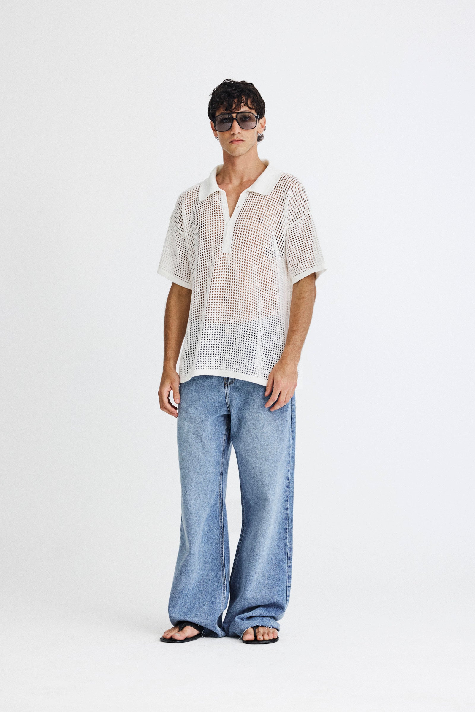 Camisa polo em ponto vazado, possui gola com fechamento frontal por botões e mangas curtas.A barra conta com fendas laterais para melhor caimento.