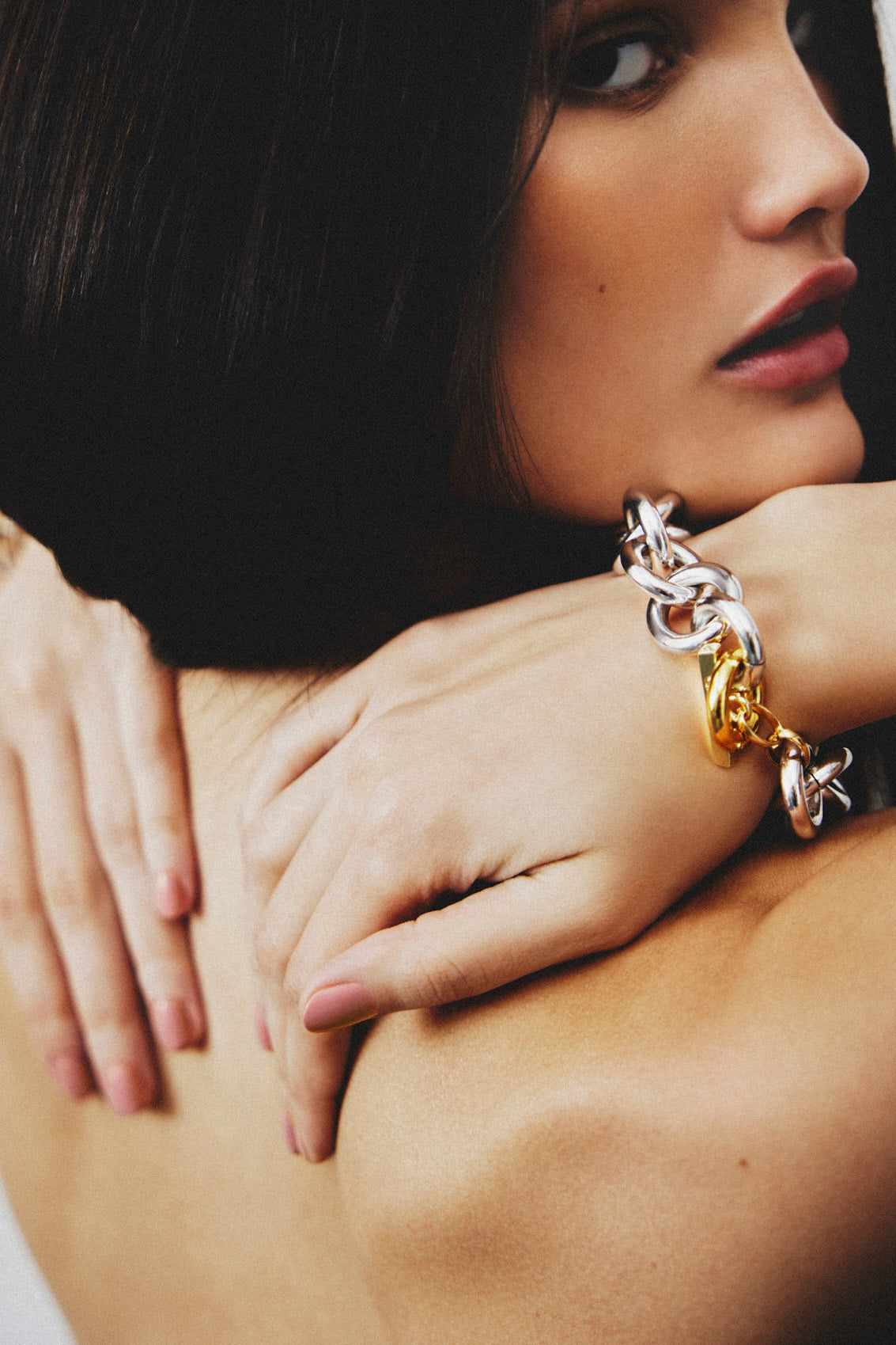 - Além de seu acabamento polido, a pulseira confere um brilho sutil que realça qualquer visual, tanto para produções casuais, quanto nas mais sofisticadas.
