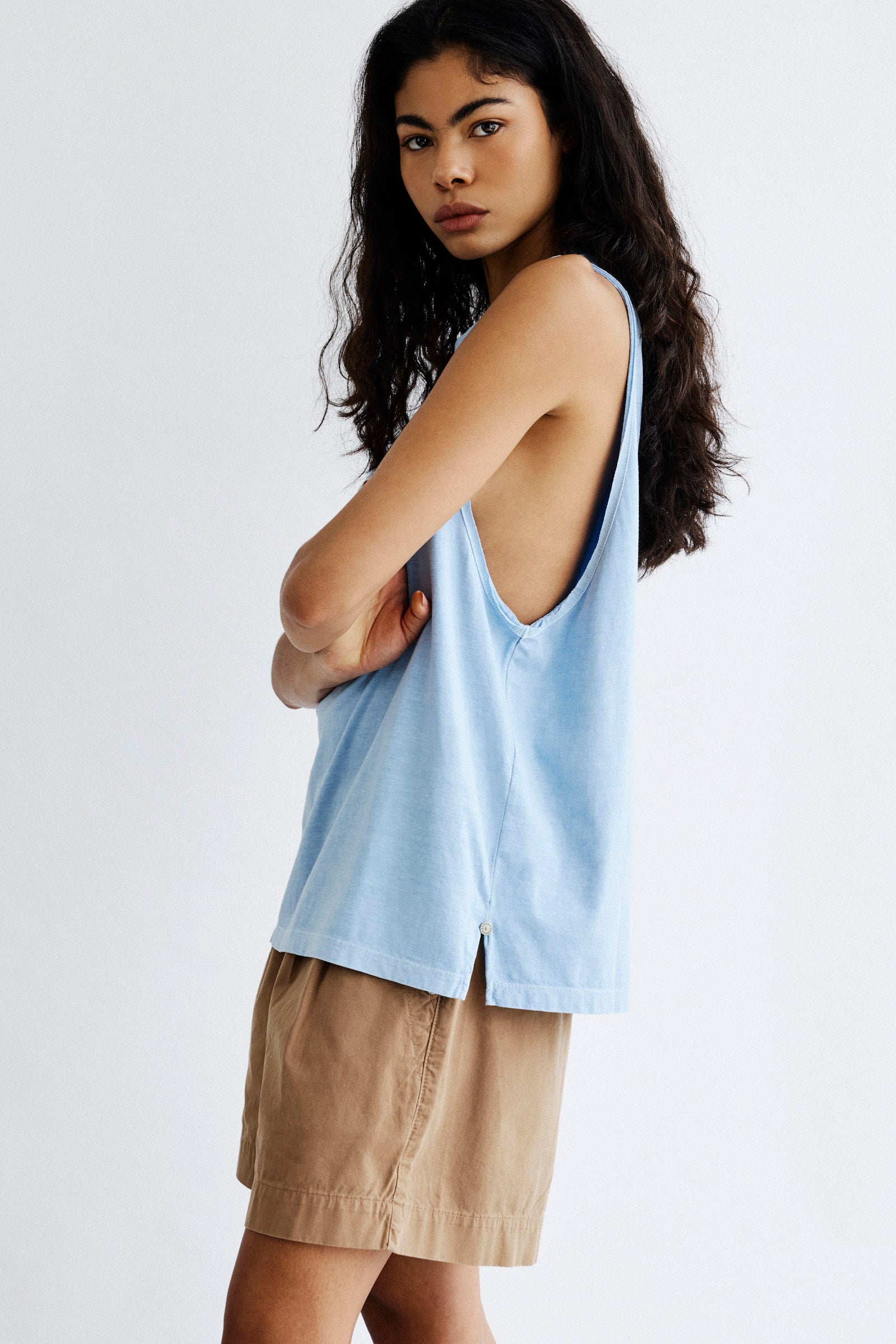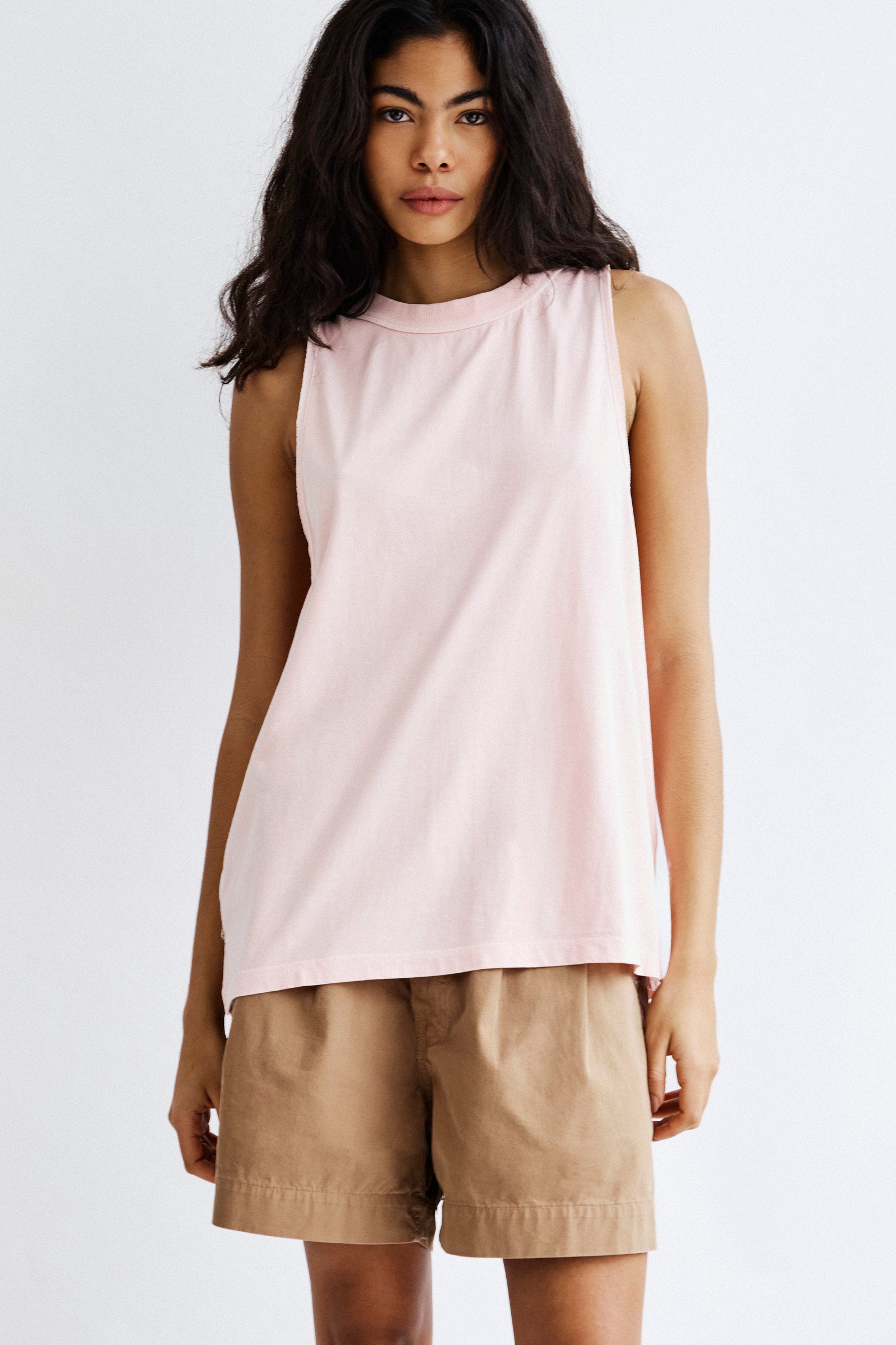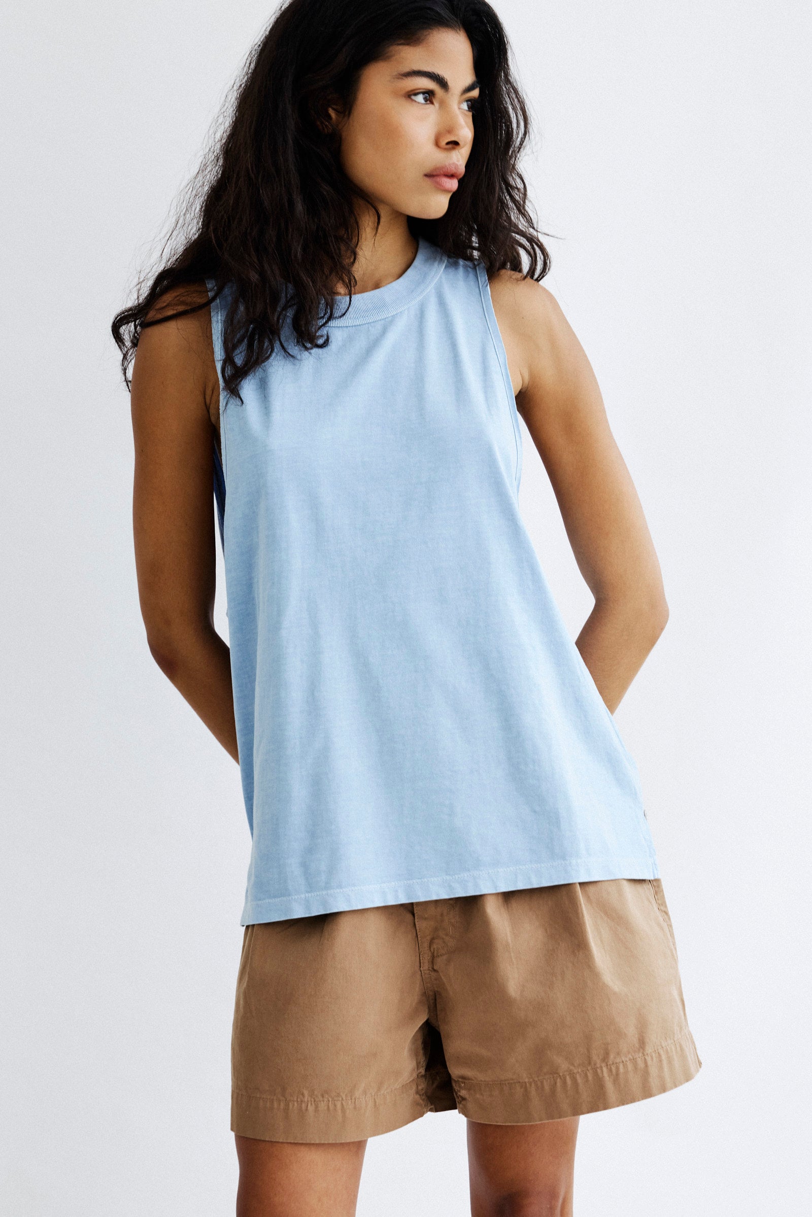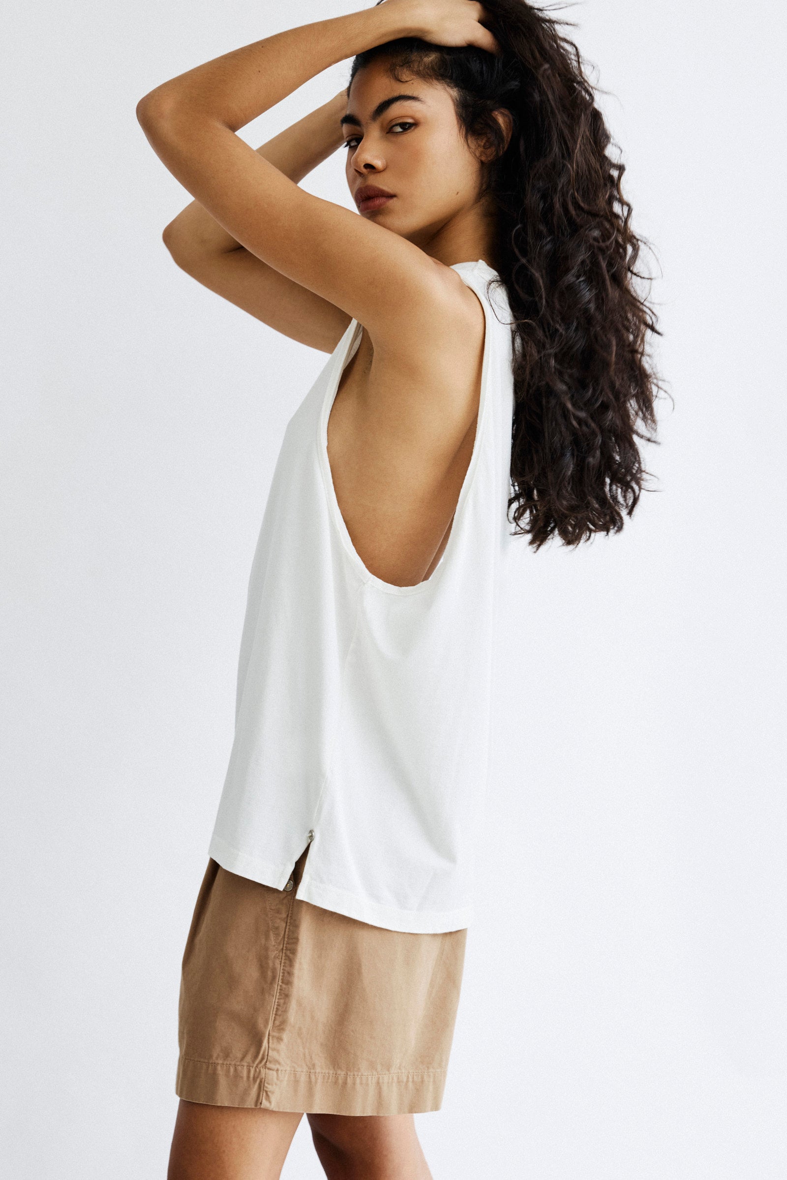 Regata feita em malhão de 270 g, com estrutura mais encorpada e toque firme. O modelo é cavado, trazendo laterais amplas que garantem uma silhueta mais despojada. Possui fendas laterais que ajudam no caimento e dão leve abertura na barra. A gola é finalizada em ribana, trazendo estabilidade e um acabamento limpo ao redor do decote.