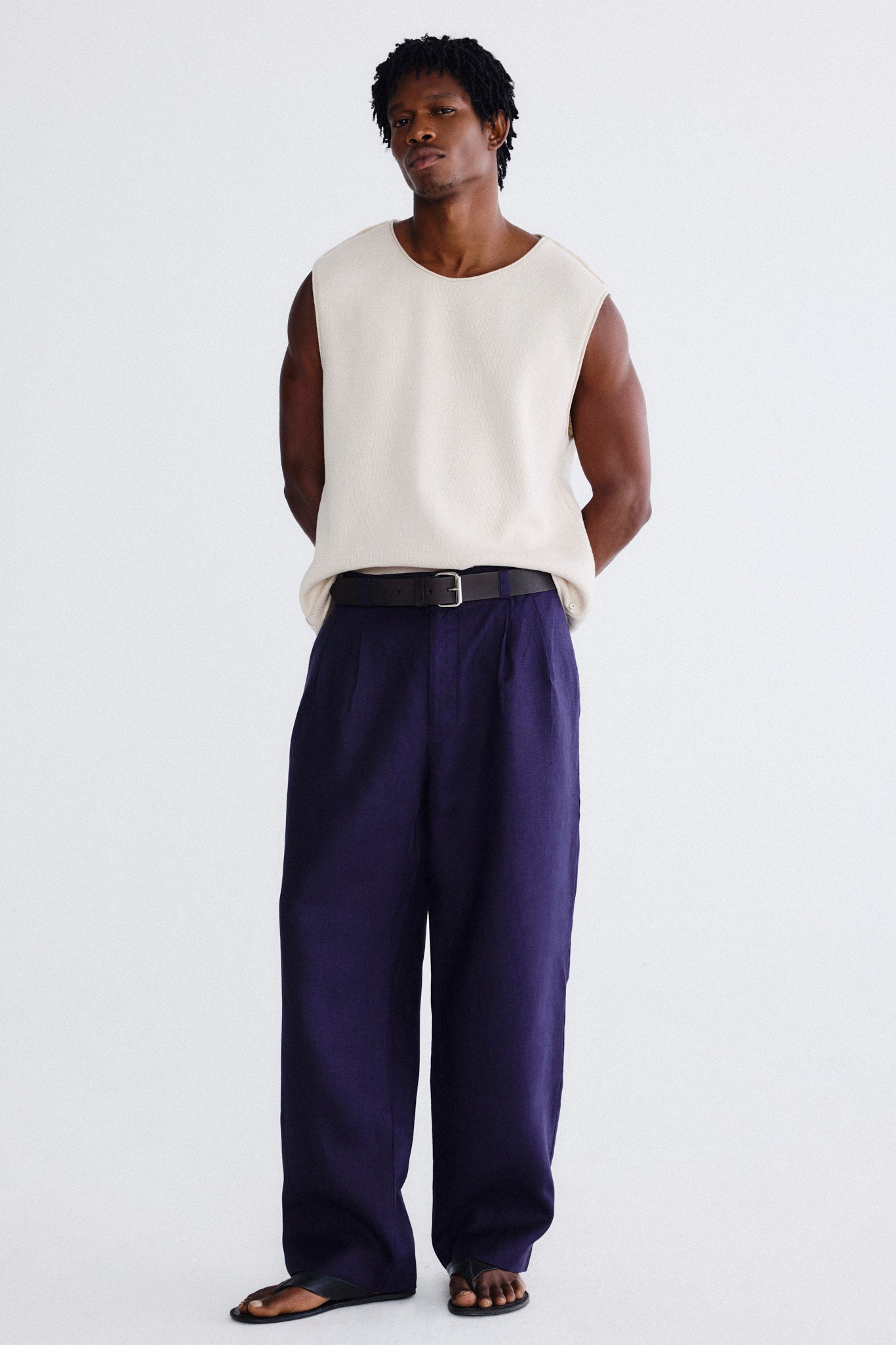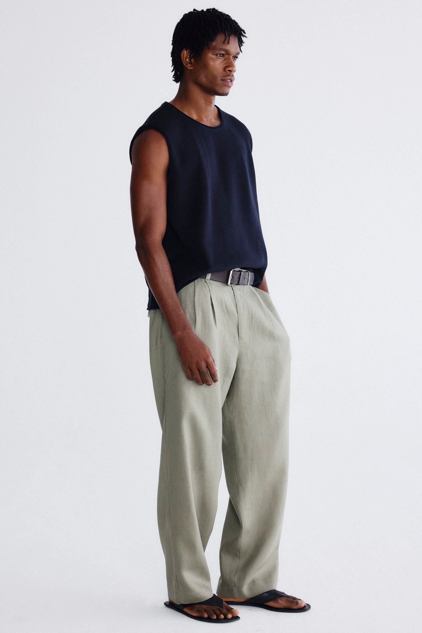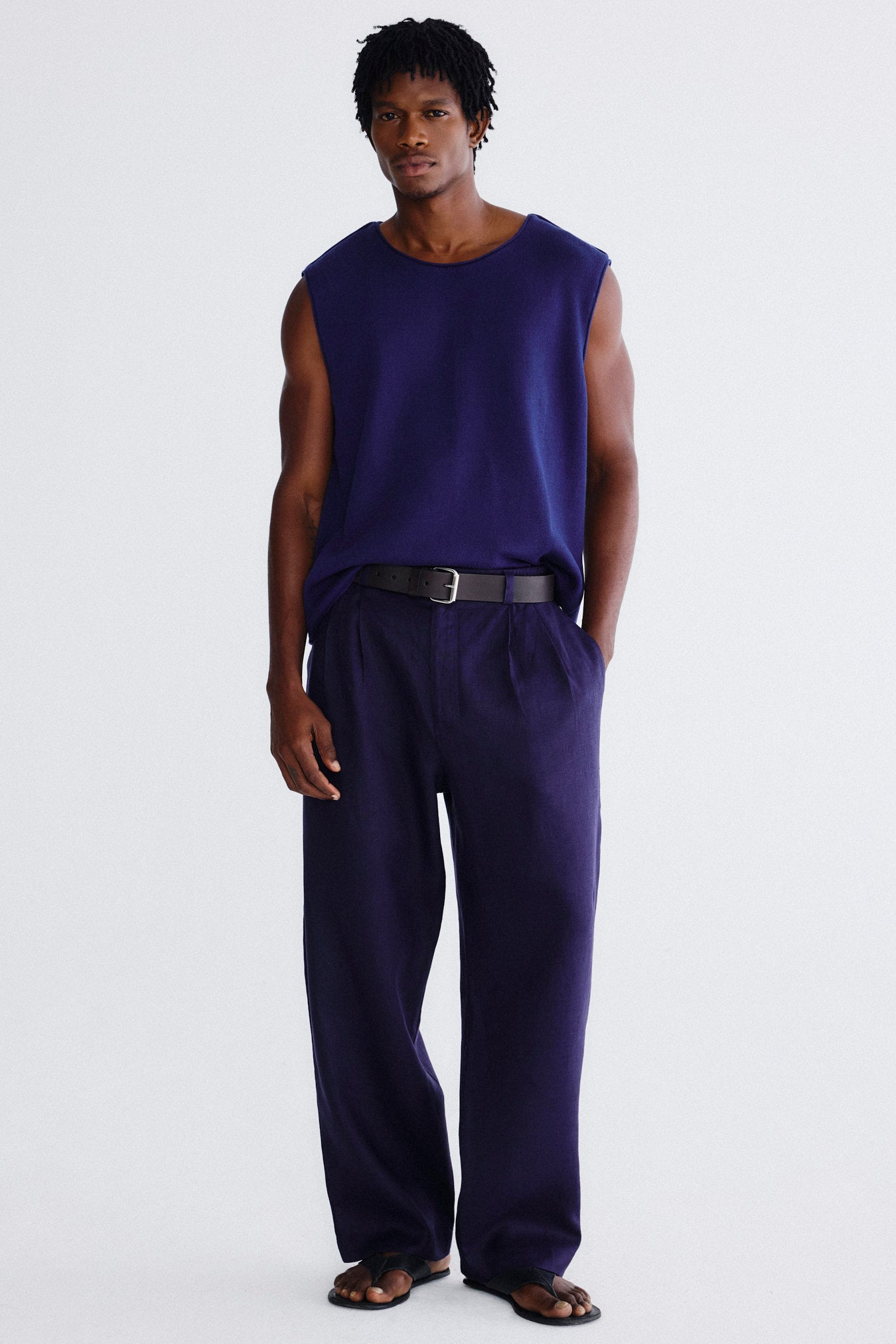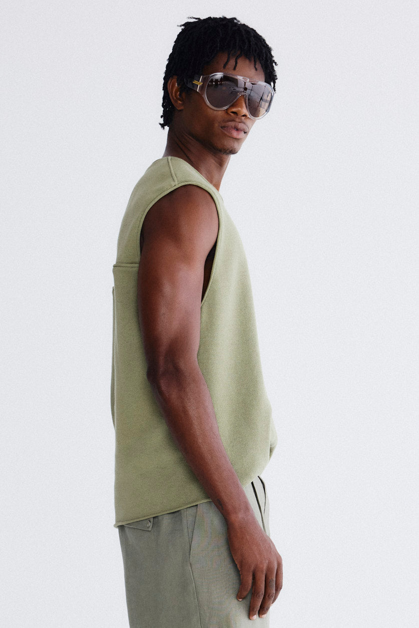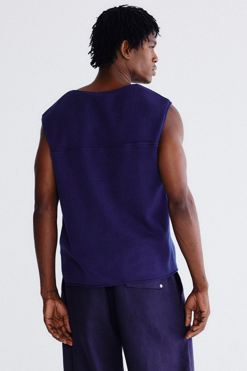 - Possui toque suave de tricot e modelagem reta com cava acentuada.