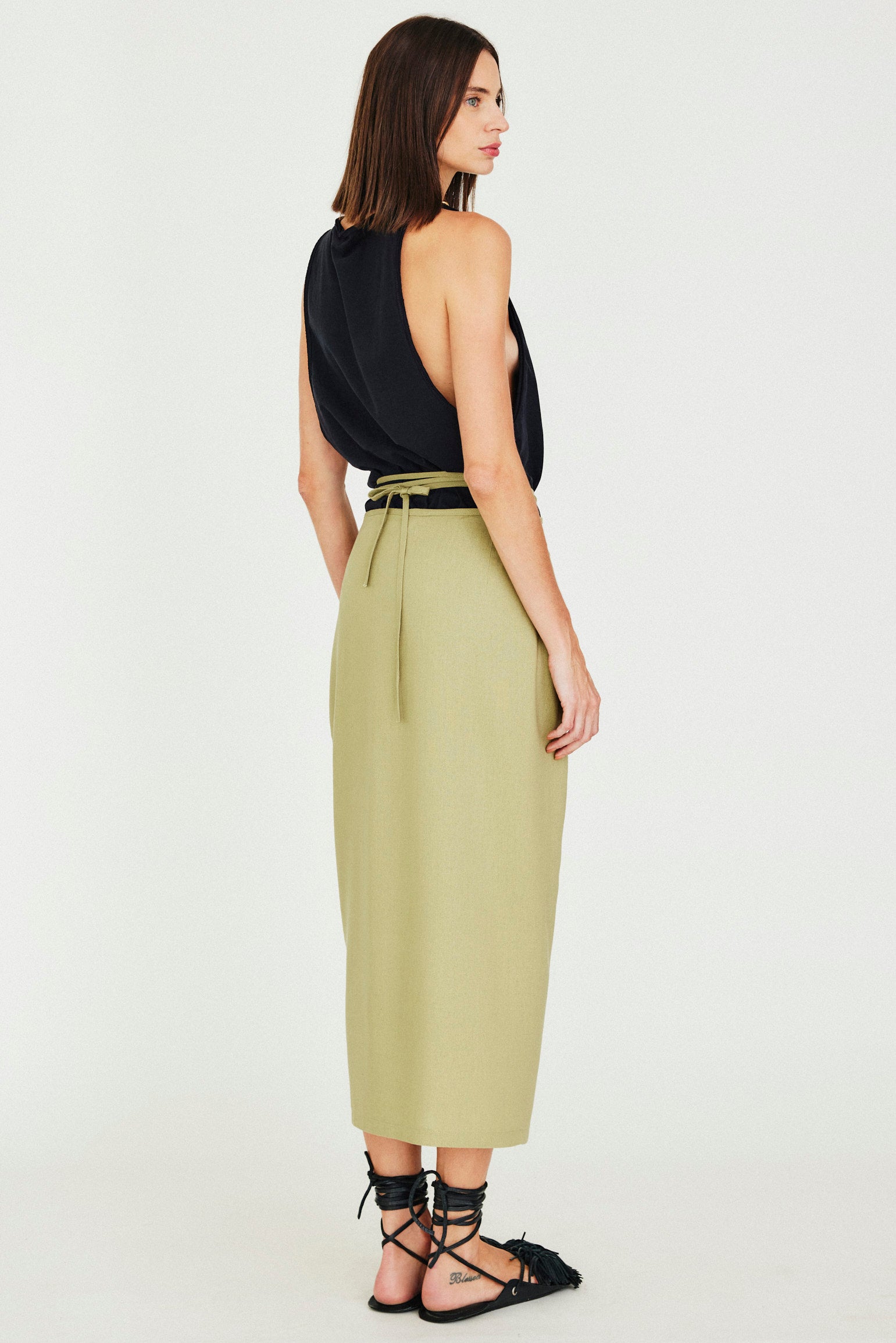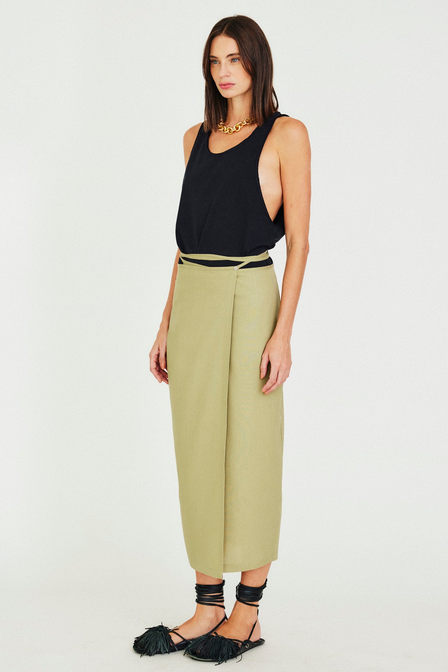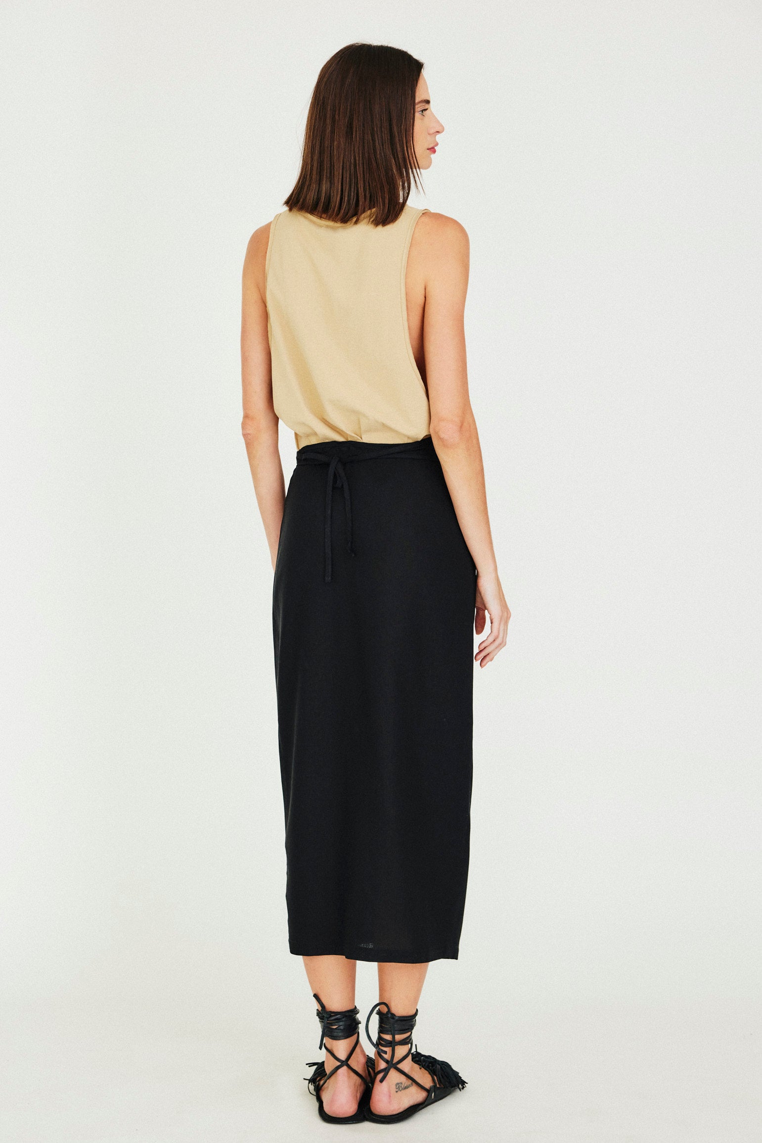 Saia pareo midi confeccionada em tecido leve e estruturado. Possui amarração lateral com tiras finas finalizada por ponteiras. Ideal para compor produções descomplicadas.  Desenvolvimento e produção 100% nacional.