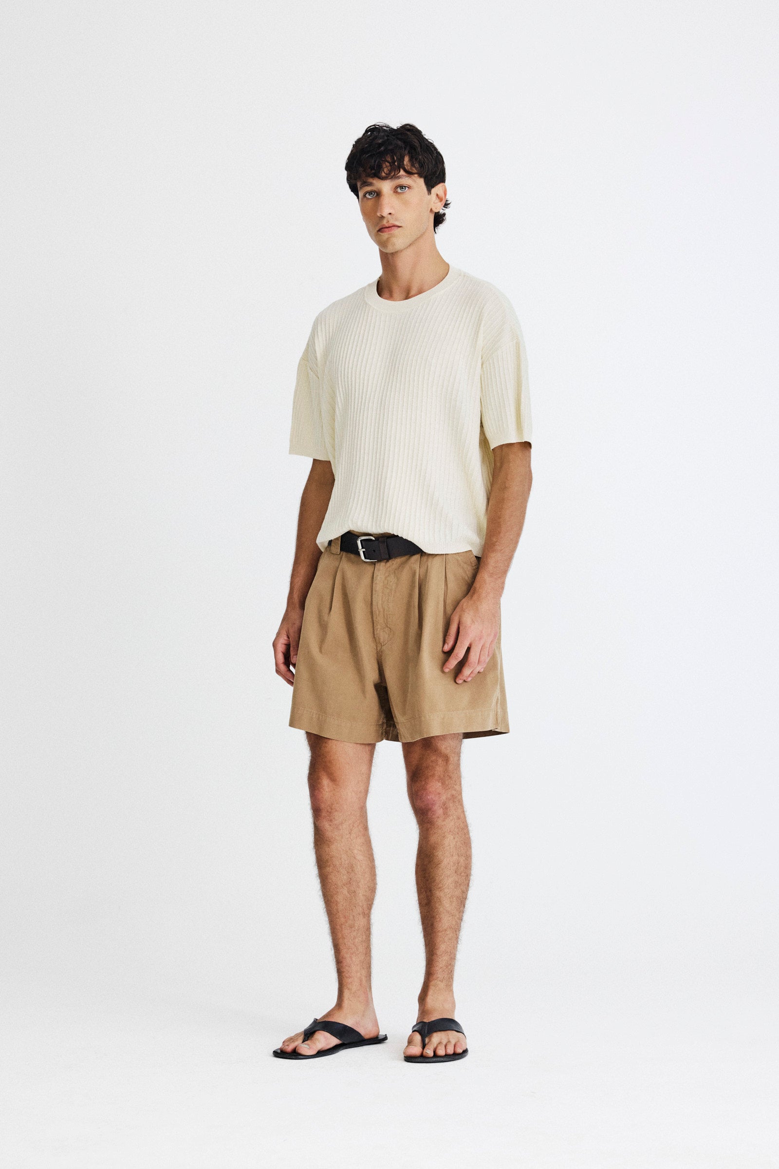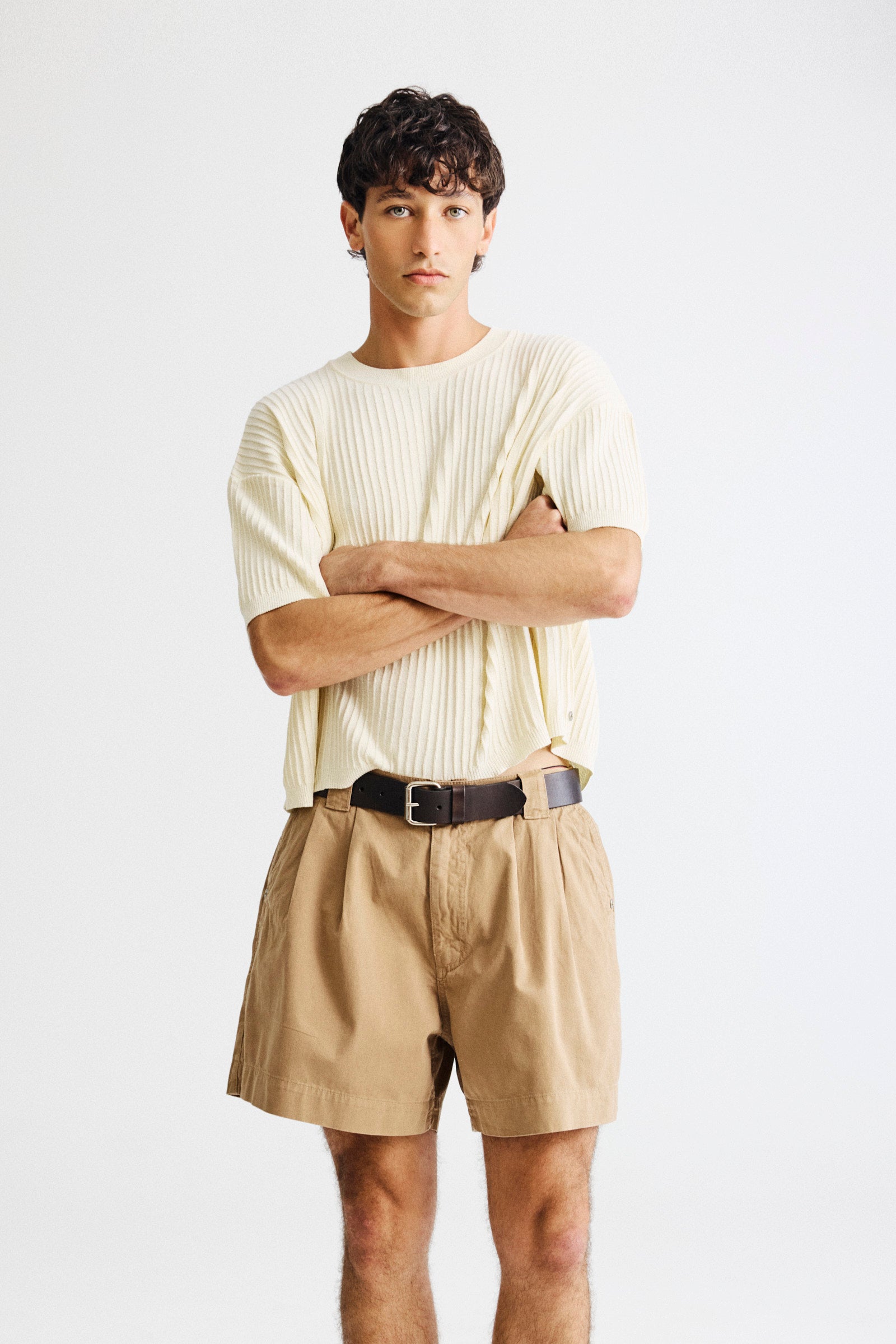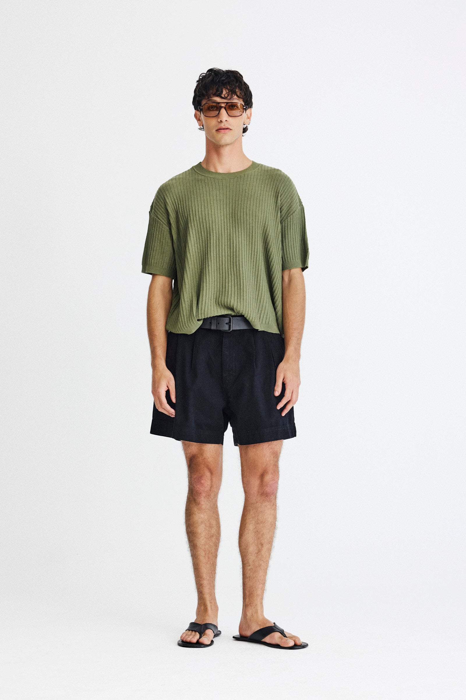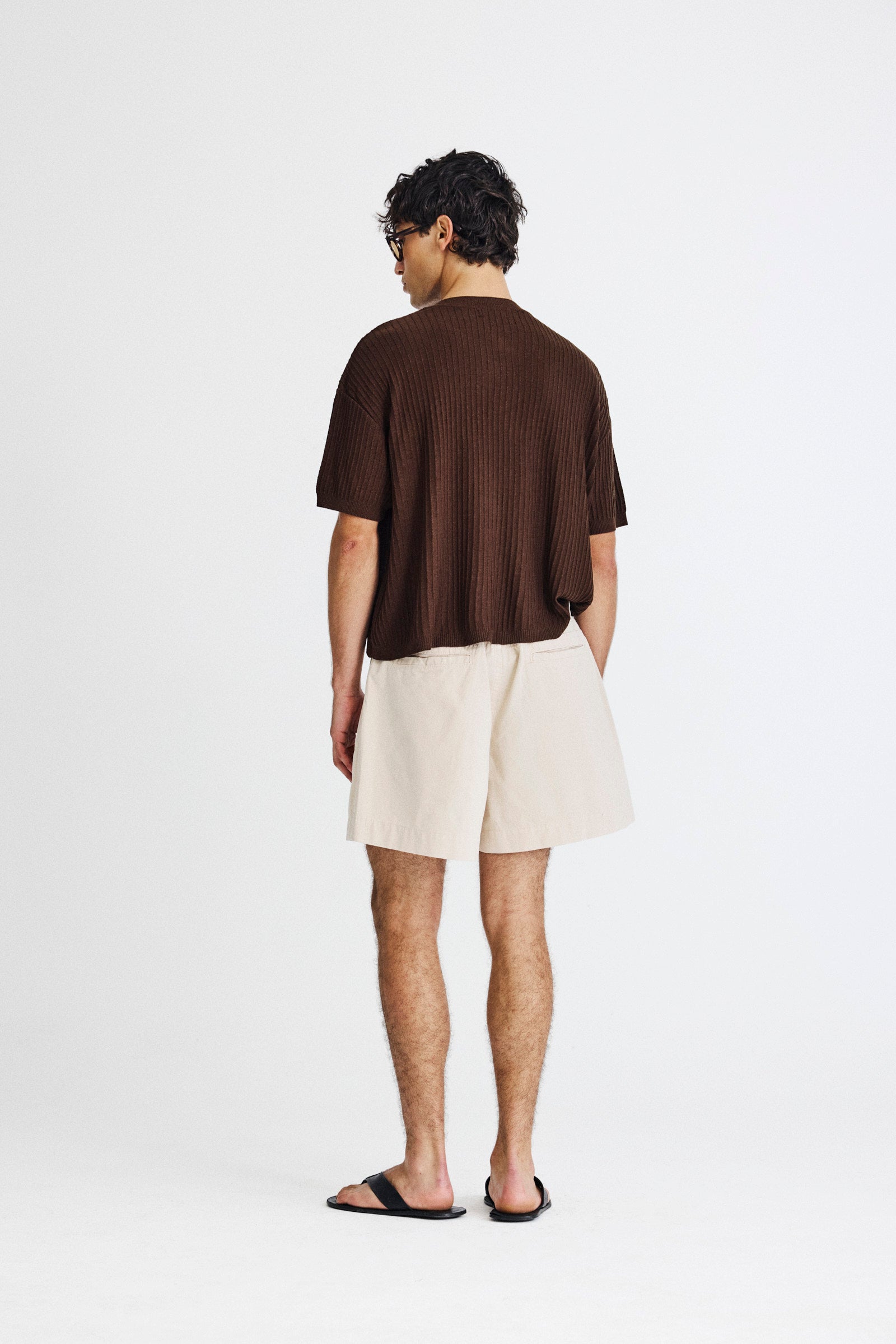 T-shirt com modelagem reta, comprimento levemente mais curto e textura canelada. O tricot tem toque macio e confortável, garantindo uso versátil em qualquer estação.